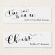 These drink tickets were designed to match the other items in a growing wedding and event suite that is both striking and simple. There's another style in the collection, but this "mini" one is a handy compact size many couples will appreciate. On one site you read "This one is on us" and "Good for One Adult Beverage" and on the other side is "Cheers" and a template place holder for the couple's names. (Alternately, you can use this drink ticket for any event or party in which you'd like to offer free alcoholic beverages to your guests... it doesn't have to be limited to wedding receptions and celebrations!) Non-editable text is rendered in a beautiful modern script font. Other text appears in a versatile serif typeface that can be changed if you wish. ////