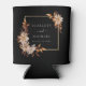 This elegant and modern wedding can cooler features hand-painted watercolor burnt orange and terracotta leaves, cream and beige dahlias, and beautiful rust-coloured roses on a black background with the bride and groom's names and wedding date on both sides. Find matching items in the Black Autumn Romance Collection.