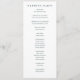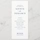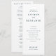 This wedding program features a minimalist and elegant design with a clean white background, emphasising clarity and simplicity. The layout is structured with ample spacing between elements, showcasing the names in bold serif fonts and ceremony details in a simple sans-serif typeface for easy readability. The colour palette consists of black text on a white backdrop, creating a sophisticated and formal mood perfect for a modern wedding celebration. Customisable sections allow for personalisation while maintaining an understated aesthetic that balances elegance with functionality.