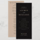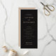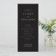 This elegant wedding program features a sleek, vertical layout with centered alignment on a solid black background, creating a striking contrast with crisp white text. The design showcases a sophisticated serif font for the main title and a smaller cursive script for "and," adding a touch of elegance. Customizable placeholders allow for easy personalization of names, dates, and locations, while the organized list format ensures clarity in presenting ceremony details. The minimalist style emphasizes formality and sophistication, making it perfect for traditional weddings.
