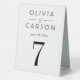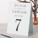 Modern and chic black and white wedding table number cards feature a stylish black typographic design with elegant custom text that can be personalised with a monogram of the bride and groom names and the table number. Note: to order, add each individual table number (1,2,3...) to your shopping cart.