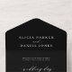 Elegant simple minimal typography black and white all in one wedding seal and send invitation template with tear away combo RSVP and QR code to website included featuring a chic trendy calligraphy script. ++++++++++++ Easy to personalise with your details, return address, and individual guest address. The invitation is suitable for classic formal simple budget affordable weddings.