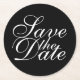 Elegant Black Wedding Save the Date Round Paper Coaster