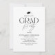 Celebrate your graduate in timeless, sophisticated style with this elegant black and white graduation party invitation. Set against a chic white background, the modern serif “GRAD” typography creates a refined focal point, complete with a stylish graduation cap icon positioned above the “R.” The flowing tail of the “R” transforms into a sleek tassel, seamlessly tying together the graduate’s name, school, college or university, and class year for a cohesive, luxury look.