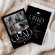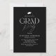 Celebrate your graduate in timeless, sophisticated style with this elegant black and white graduation party invitation. Set against a stylish black background, the modern white serif “GRAD” typography creates a refined focal point, complete with a stylish graduation cap icon positioned above the “R.” The flowing tail of the “R” transforms into a sleek tassel, seamlessly tying together the graduate’s name, school, college or university, and class year for a cohesive, luxury look.