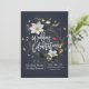 Elegant Black White and Gold Floral Wreath Wedding Invitation