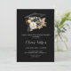 Elegant Black White and Gold Flowers Graduation Invitation