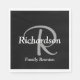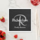 Enjoy these elegant paper napkins featuring your name over your monogram in modern script typography on a black background. Text templates are provided for your monogram (in light grey), name and optional "Family Reunion" event (in white).
