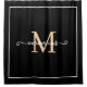 Elegant Black &white Bordar Script Monogram Name Shower Curtain