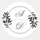 Elegant black, white branch and initials wedding classic round sticker