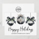 Send warm holiday wishes from your business with this elegant flat holiday card, perfect for clients, customers, or team members. The front features a minimalist design with three black and white watercolor ornaments, accented by evergreen greenery and simple bow details. "Happy Holidays" (or your choice of greeting) is written in graceful script typography, with your company name displayed underneath in a classic serif font for a professional yet festive touch.