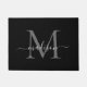 Elegant Black White Custom Monogram Script Name Doormat