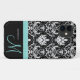 Black and White Damasked Pattern with customised monogram.. Aqua Blue Ribbon.