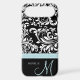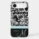Elegant Black & White Damask Pattern with Monogram Case-Mate iPhone Case