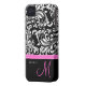 Elegant Black & White Damask Pattern with Monogram Case-Mate iPhone Case