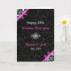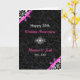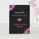 Elegant black floral damask with pink ribbon. 25th wedding anniversary