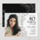 Elegant Black White Floral Photo 40th Birthday Invitation