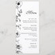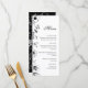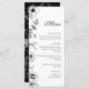 Floral black and white wedding menu.