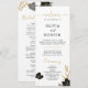 Elevate your wedding celebration with our "Elegant Black & White Floral Wedding Party Program." This exquisite design blends timeless black and gold aesthetics with delicate floral elements, creating a sophisticated program for your special day. Effortlessly guide your guests through the festivities with a touch of elegance and style. Customise this program to reflect the unique details of your wedding, ensuring a memorable and harmonious celebration.