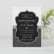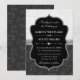 This sophisticated wedding design features a graceful blend of black, white, and silver tones with floral motifs and ornamental detailing. A silver ribbon with a diamond-like embellishment separates the top and bottom floral sections, framing a central black panel with refined white typography. Perfect for formal weddings, black-tie events, or upscale stationery, this layout evokes timeless elegance with a touch of sparkle and romantic charm.