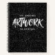 A girly black glitter personalised sketchbook. The words, "The Amazing Artwork of" in a brush script font personalised with your name below. Customise the sketchbook with the name of your choice to make someone feel extra special. Makes a fun gift for birthdays or for Christmas. Comes in a variety of colours. Designed for you by Blackberry Boulevard.