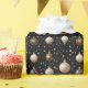 Elegant Christmas Wrapping Paper with Christmas ornaments in white, black and gold. Gold glitter is on some of the ornaments, there are snowflakes and stars.