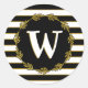 Elegant Black White Gold Stripes Wreath Monogram Classic Round Sticker