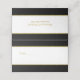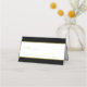 An elegant Black and White with gold trim table place card featuring the bride and grooms names and their wedding date on the back.