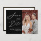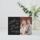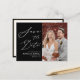 Modern Black and White Elegant Script Photo Simple Wedding Save The Date Announcement Postcard. Let your family, friends and colleagues know that you have set a date for your wedding celebration with this elegant, stylish and modern wedding save the date invitation card. All the texts are pre-arranged for you to personalise easily and quickly with your own details.