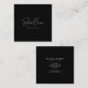 Elegant square black business cards with minimalist white typography offer a modern and sophisticated design ideal for fashion stylists, entrepreneurs, and professionals seeking a bold and memorable look. The front highlights a chic handwritten script name paired with a sleek serif tagline, while the back features a refined, structured layout for essential contact details. The square shape enhances the contemporary aesthetic, giving the design a unique edge that stands out from traditional cards. Perfect for luxury branding, creative businesses, and high-end professionals, this stylish monochrome design delivers both elegance and impact.