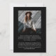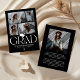 Announce your graduate’s milestone in timeless, sophisticated style with this elegant black and white graduation announcement card. Featuring a trendy black background, the design highlights the word “GRAD” in a modern serif typeface, accented with a stylish graduation cap icon above the “R.” The flowing tail of the “R” transitions into a sleek tassel that connects the graduate’s name, school, and class year, creating a cohesive and high-end finish.
