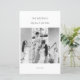 The minimalistic white background enhances the modern aesthetic, while the refined typography blends a classic serif for the date details with a delicate script font for the couple’s names.