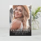 Sleek Modern Graduation Announcement & Party Invitation. The front features a full-page photo with a subtle black gradient at the bottom, where "Class of 2026" is prominently displayed in bold font. Below that, the graduate's name and school are elegantly written in handwritten script calligraphy, creating a clean and sophisticated layout.