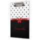 Elegant Black white polka dots red bow Personalise Clipboard