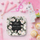 Delicate white roses surrounding this elegant black bridal shower plate, customisation and personalisation details in light grey typography.