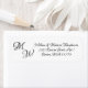 Elegant black and white script custom couple’s initials monogram chic wedding return address labels.