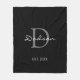 Elegant Black White Script Monogram Name Fleece Blanket