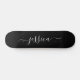 Modern, girly skateboard with a black background design and an elegant white hand lettered script. Personalise with your name.