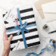 Elegant Black White Stripe Gold Frame Wedding Gift Wrapping Paper