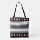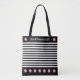 Elegant black & white striped bag with beautiful pink flowers and "Eco Friendly Life" personalised text. Let's spread good vibes!