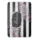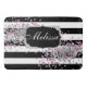 Elegant Black White Stripes Diamond Pink Bath Mat
