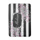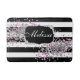 Elegant Black White Stripes Diamond Pink Bath Mat