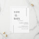 A simplistic and elegant black and white wedding save the date card, designed with serifs, and script lettering. Personalise with your names, and future wedding details.