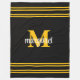 Elegant black &yellow white monogram name fleece blanket