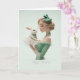 Elegant Blonde in Green w/ Pretty Bunny BDay Card