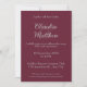Invite guests to your wedding with this sophisticated invitation featuring elegant silver/grey script on a dark blood red background. The back of the card includes a space to upload your favorite couple photo and personalize your initials. On the front, you can add all your wedding details. This design offers a timeless and stylish way to announce your special day.