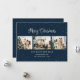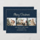 Elegant custom blue photo Merry Christmas cards featuring a photo collage and falling snow on a blue background. Easily personalise this blue photo Christmas card with your favourite images, a family name and text.