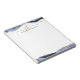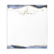 Personalised, elegant notepad with calligraphy script initials or monogram and name in gold and navy blue with blue agate and faux gold glitter border accents. CHANGES: The text font style, colour, size and placement can be changed by clicking EDIT for a custom look. ASSISTANCE: For help with design modification or personalisation, colour change, resizing, transferring the design to another product or if you would like coordinating items, contact the designer BEFORE ORDERING via the Zazzle Chat MESSAGE tab below or email makeitaboutyoustore@gmail.com.