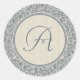 Elegant Blue and Beige Damask with Monogram Classic Round Sticker