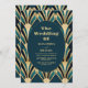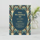 Elegant Blue and Gold Art Deco Wedding Invitation